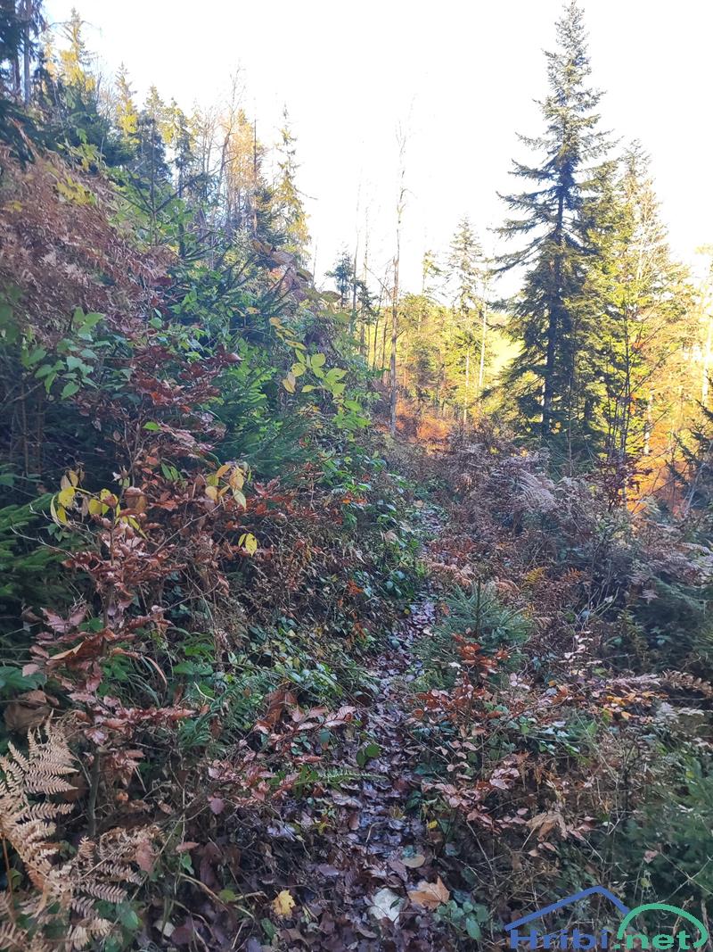 Rahlo zaraščen del poti ob poseki.