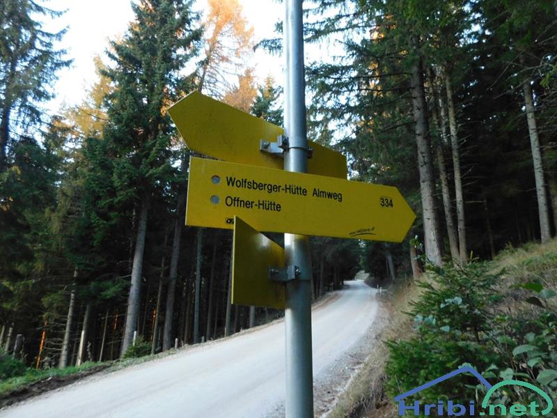 Sledimo oznakam za koči Wolfsberger Hütte in Ofnerhütte.