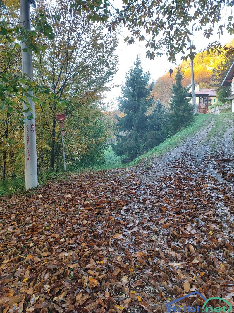 Še eno razpotje. Desno navzgor planinska koča Cerinski Vir, mi gremo naravnost.
