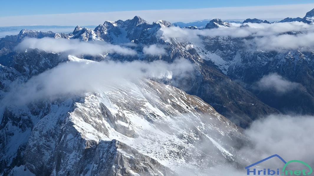 Zadaj linija naših najvišjih, spredaj greben Mojstrovk.