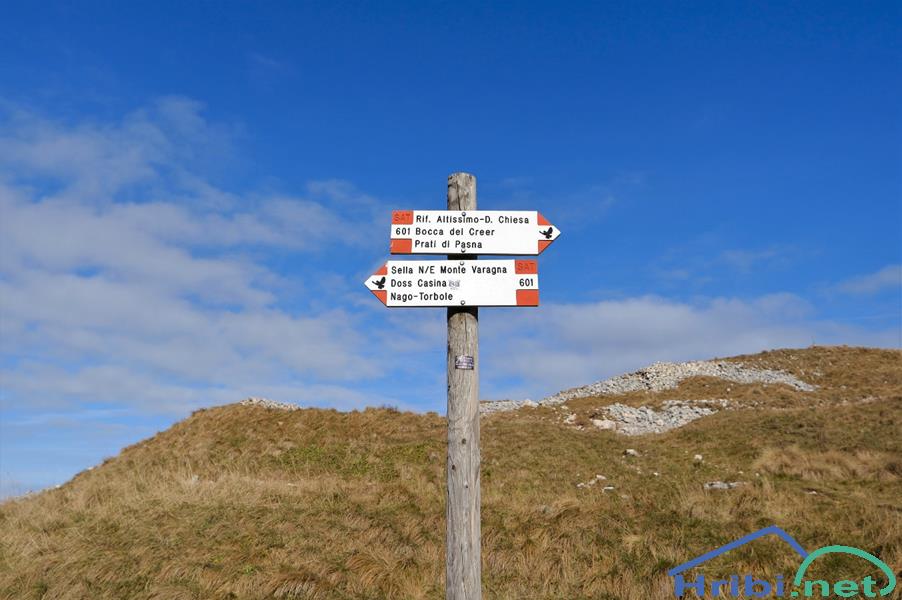 Za povratek preklopiva na 601 v smeri Monte Varagna. Orel označuje vojaške poti