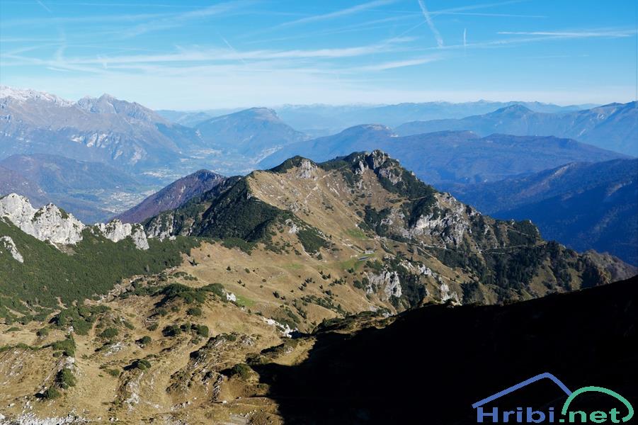 Pogled proti planini Malga Nardis. Globoko pod njo je krasna ferata Signora delle Acque