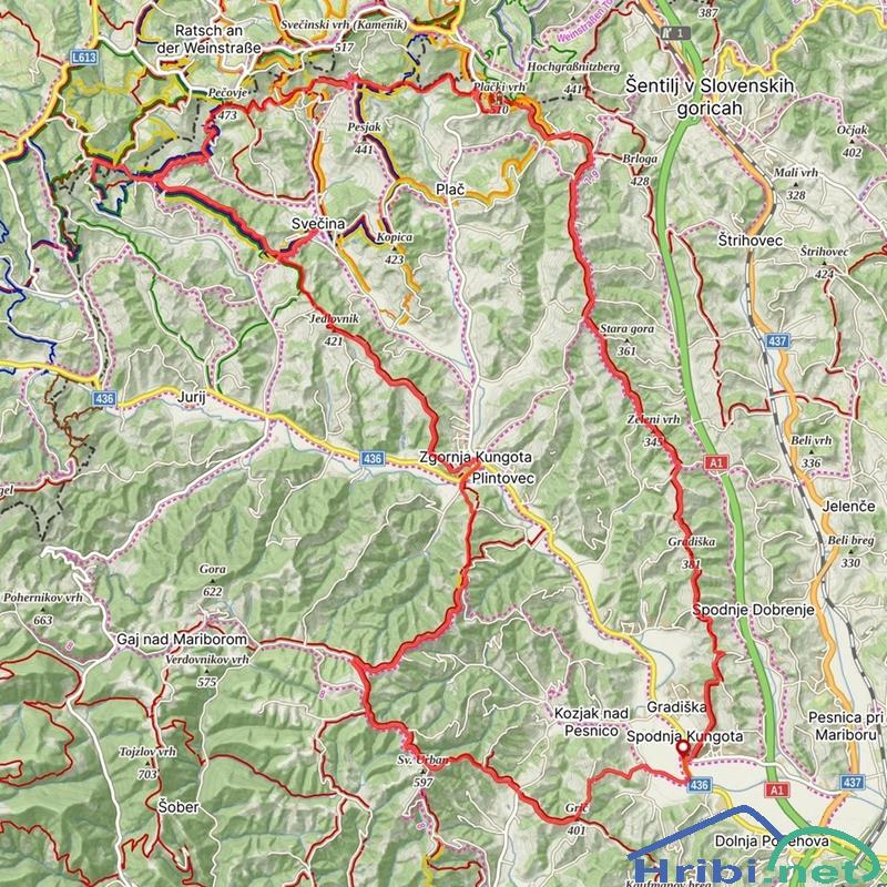 GPS sled prehojene poti. Naredila sva 40 km in 1500 višincev